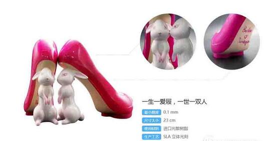 包貝爾婚禮專屬定制的新娘婚鞋則是刷爆了網絡,眾明星紛紛被這雙鞋萌到了并發布微博,而這雙鞋實際上也是使用SLA 3D打印技術所實現, 配合后期上色處理,徹底萌化人心。