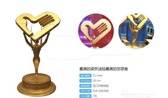 獎杯是經常需要用到的道具,每次頒獎儀式主辦方都要為獎杯的設計操碎了心,以往我們見到的獎杯基本都是水晶雕刻或者內雕而成,大部分造型都比較簡單,但隨著3D打印技術的發展,獎杯產業也發生了變化,獲獎者拿到的獎杯開始千變萬化,獎杯的設計也與主題緊緊相扣。同樣使用SLA光固化3D打印再手工上色而成。