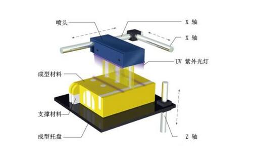 噴墨技術(shù)工藝(Polyjet)是基于噴射液滴的逐層堆積和固化的一種3D打印工藝成型技術(shù)。
