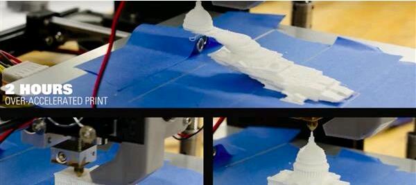 該技術被稱為“濾波B樣條(FBS)振動補償”,并且使用3D打印機的動力學的先驗知識來減輕振動問題。這樣可以使機器更快地打印,而不會導致錯誤,如表面波紋。“軟件補償不是一種新技術,但挑戰是如何以有效,強大和多功能的方式使用它,”Okwudire解釋說。而FBS算法在實驗中有效地工作,Okwudire和他的團隊認為,這可能是一種高性價比的手段,可以從低成本的桌面3D打印機中取得更好的打印效果。使用軟件補償真是個好東西是,在某種意義上說,它是免費的,“Okwudire說,將聰明的技術與其他選項進行對比,例如投資于高級物理組件。實驗室進行的一項測試涉及3D打印國會大廈建筑模型來測試有或沒有FBS算法的區別。