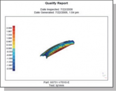 使用3D掃描技術進行三維檢測是一種全尺寸檢測技術,其基本方法是:先對待檢測部件進行局部或整體3D掃描,把得到的3D點云與其3D數模進行比對,生產顏色誤差編碼圖和直觀的檢測報告。