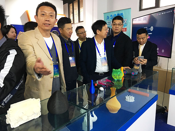 全國(guó)3D大賽嘉賓一行參觀數(shù)造科技展臺(tái)。