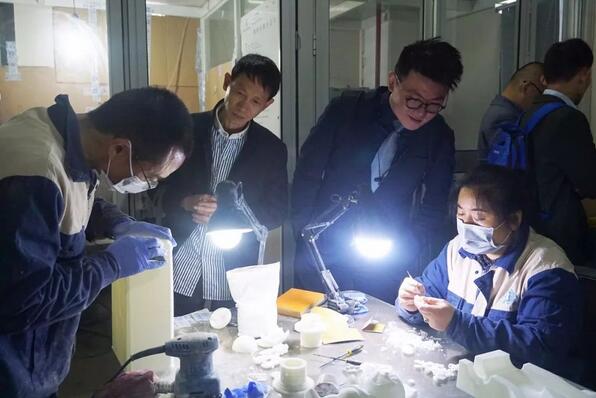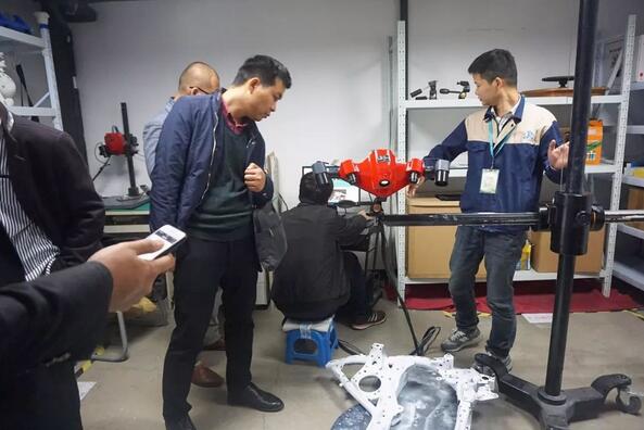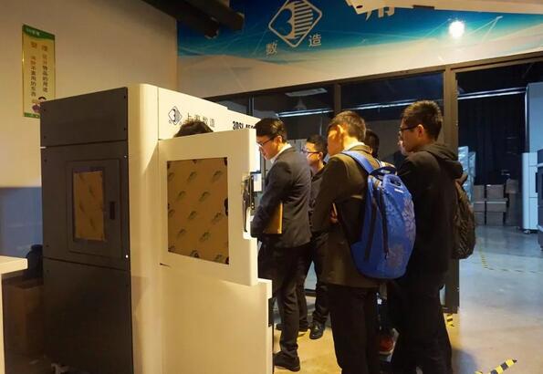30日上午舉行的3D打印與三維掃描技術培訓和實操體驗環節中,合作伙伴們饒有興致地觀摩3D打印機設備,并與培訓工程師進行技術交流。